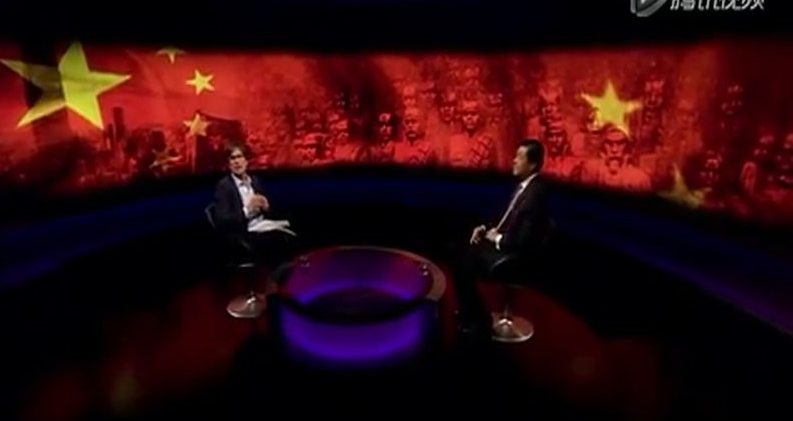 訪談當天,正值中國人民抗日戰爭暨世界反法西斯戰爭勝利70周年國慶閱兵紀念活動,所以在這個特殊時期,這個話題自然最受國際社會的重視。主持人佩斯頓拋出問題,中國舉行這么大規模的閱兵儀式,和慶?;顒樱欠褡屖澜缬X得中國是一個讓人懼怕的國家。劉曉明:事實上,中國發出的信息響亮而明確,這就是和平。和平來之不易,和平應當珍愛,和平應當維護。中國將為維護世界和平和地區穩定做出自己的貢獻。習近平主席在10多分鐘的講話中,18次提到和平。這就是中國發出的信息。之后,劉曉明大使列舉了一個數字:3500萬人的傷亡人數,占到當時世界各國傷亡總人數約三分之一,也是二戰中傷亡人數最多的國家。而西方人很少了解中國人民為此做出的犧牲、以及在世界反法西斯戰爭中做出的巨大貢獻。所以,今天的中國人選擇用隆重的方式紀念那段歷史,中國人民把抗日戰爭和世界反法西斯戰爭勝利70周年視為一個慶祝勝利、緬懷先烈的重要時刻。