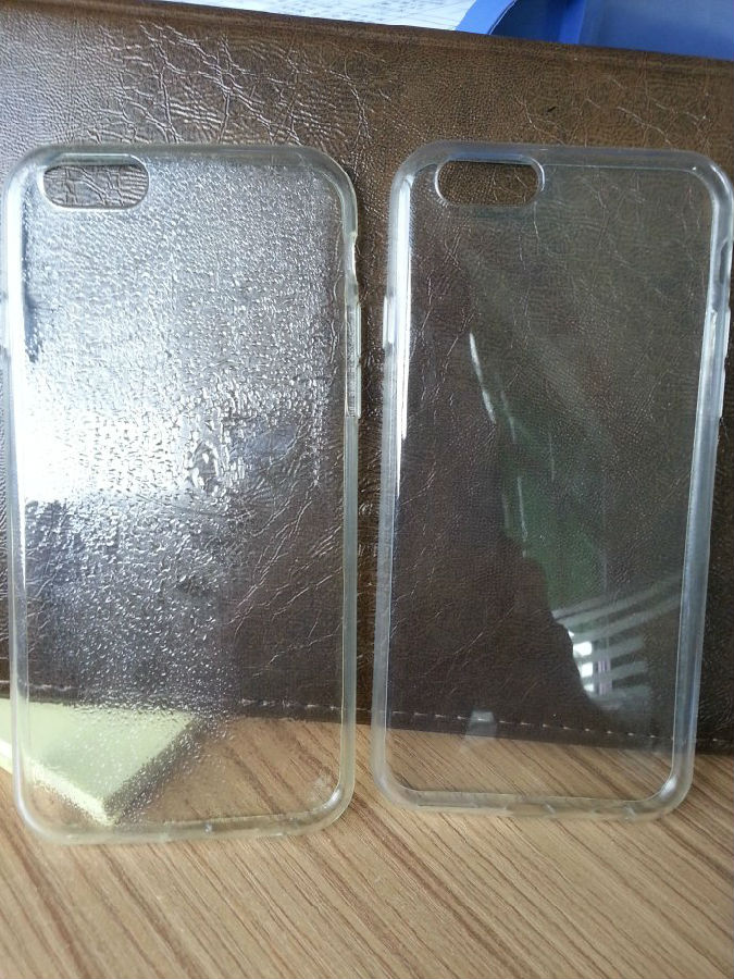 最近我司研發了一款TPU處理水,主要性能是遮蓋油污提升附著力效果,目前用在最多的地方就是手機保護套上,噴涂廠都遇到同樣一個問題,TPU素材上有油污導致噴油脫漆,大多數TPU素材在注塑成形過程中為了改善脫模不良離型變形問題,都會在模具上噴上中性或油性的脫模劑(離型劑),這樣一來在產品上就混有脫模劑,就算噴涂前表面清潔也不能把脫模劑清理干凈,導致在真空電鍍工藝上經常會有不上油和電鍍面發霧發彩等不良現象。